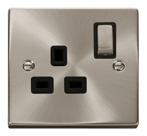 Click Scolmore VPSC535BK Deco Satin Chrome 13A Single Socket Black Inserts
