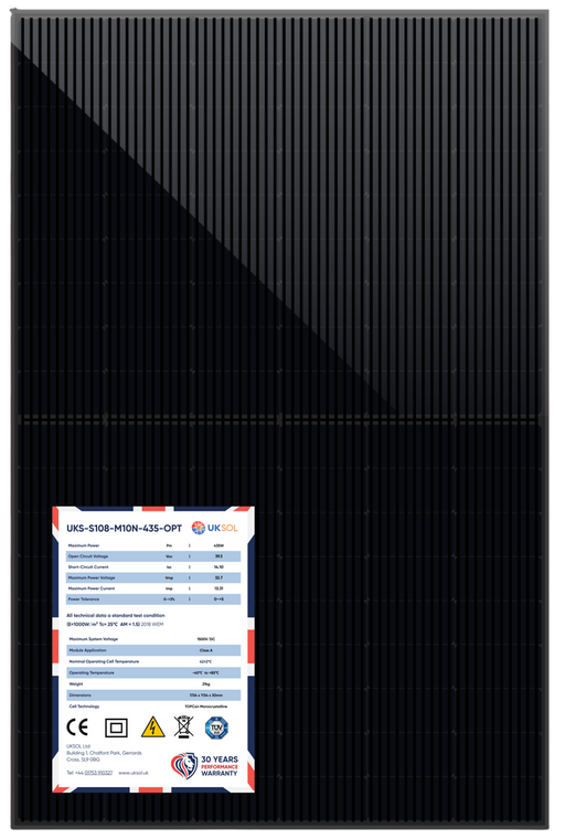 UKSOL UKS-S108-M10N-435-OPT 435W Anti-Shading Tigo Optimised Innovation Measure Module - Full Black