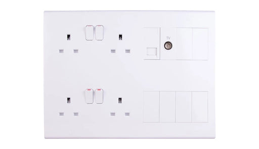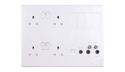 DetaMain Features: Unique slim profile with curved top and bottom edges and fixing screw cap covers 4g 13A socket outlets with TV/FM (DAB) quadplexer,...
