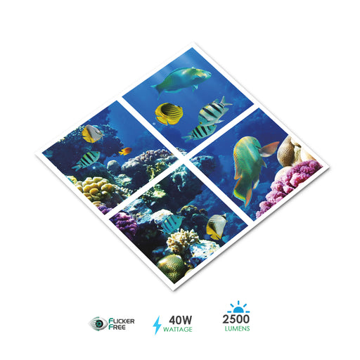 ENER-JENER-J E803 595x595mm 2D Marine Ocean with Fishes Design LED Panels 40W 4 pcs Set