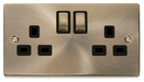 Click Scolmore Deco VPAB536BK 2 Gang 13A DP 'Ingot' Switched Socket Outlet Antique Brass - Black